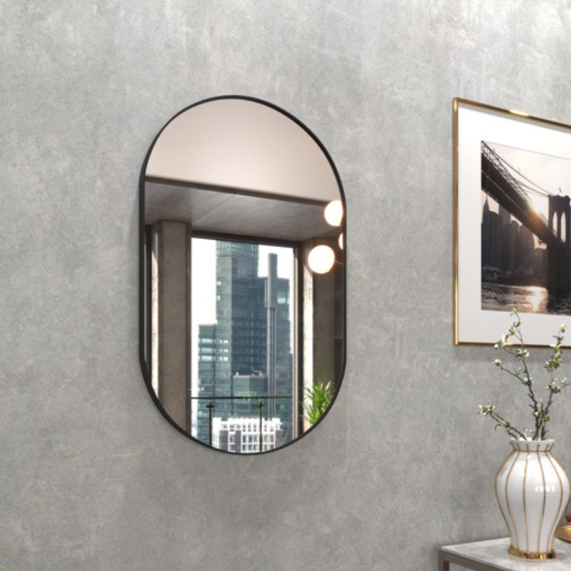 Espelho de Parede Oval 60x40 Com Acabamento em Couro