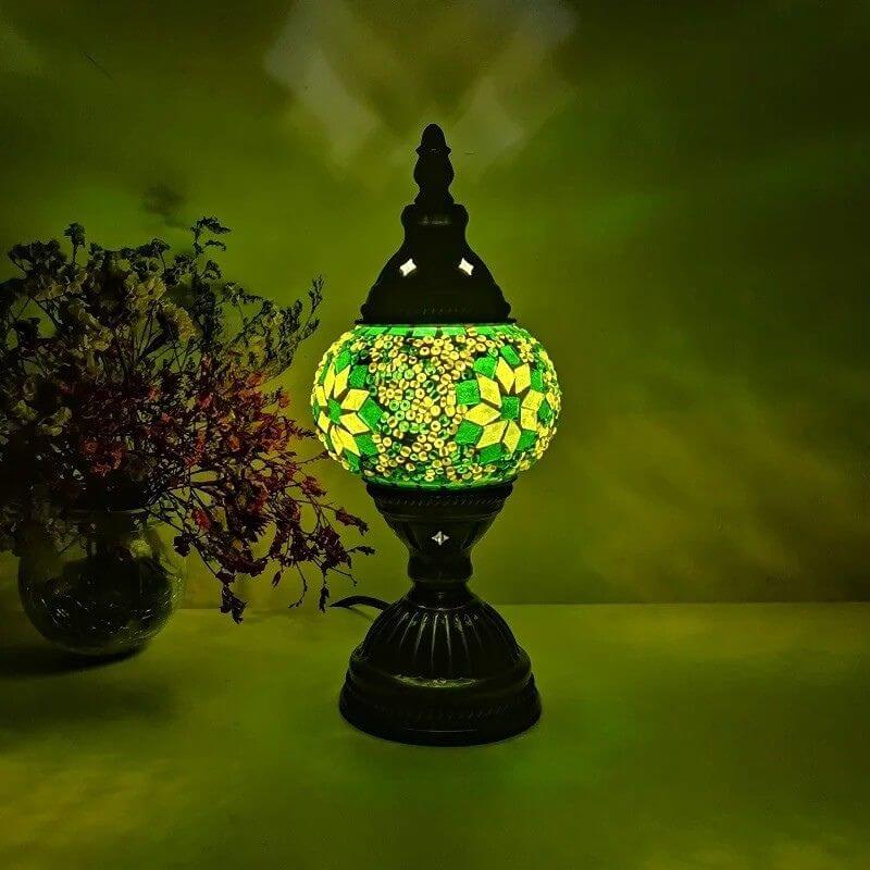 Transforme o ambiente da sua casa com o Abajur de Mesa Turco Modelo Istambul, uma peça que une o encanto artesanal do Oriente com o charme da decoração moderna. Cada detalhe em mosaico colorido é feito à mão, criando reflexos únicos que enchem o espaço de calor e sofisticação.